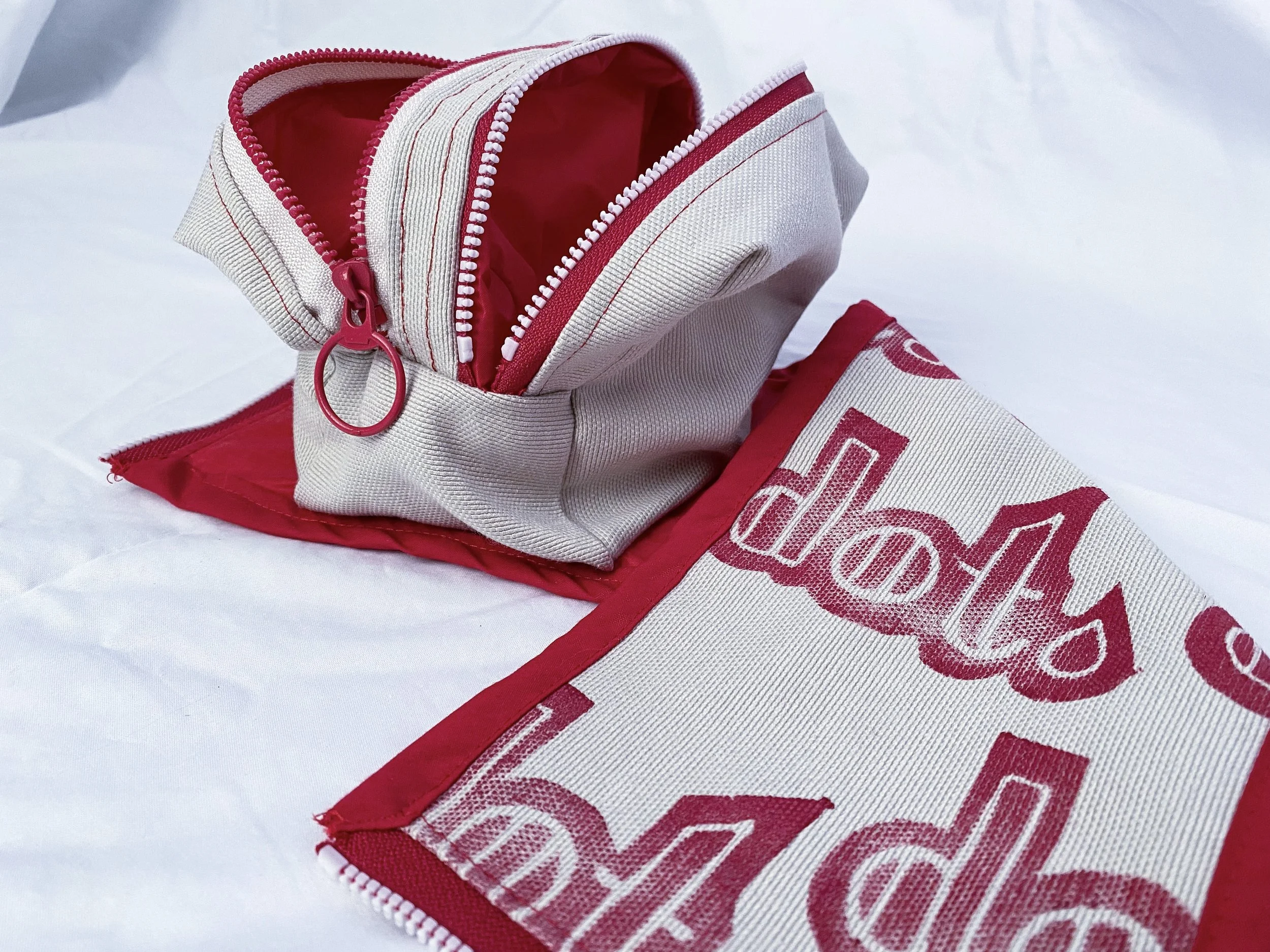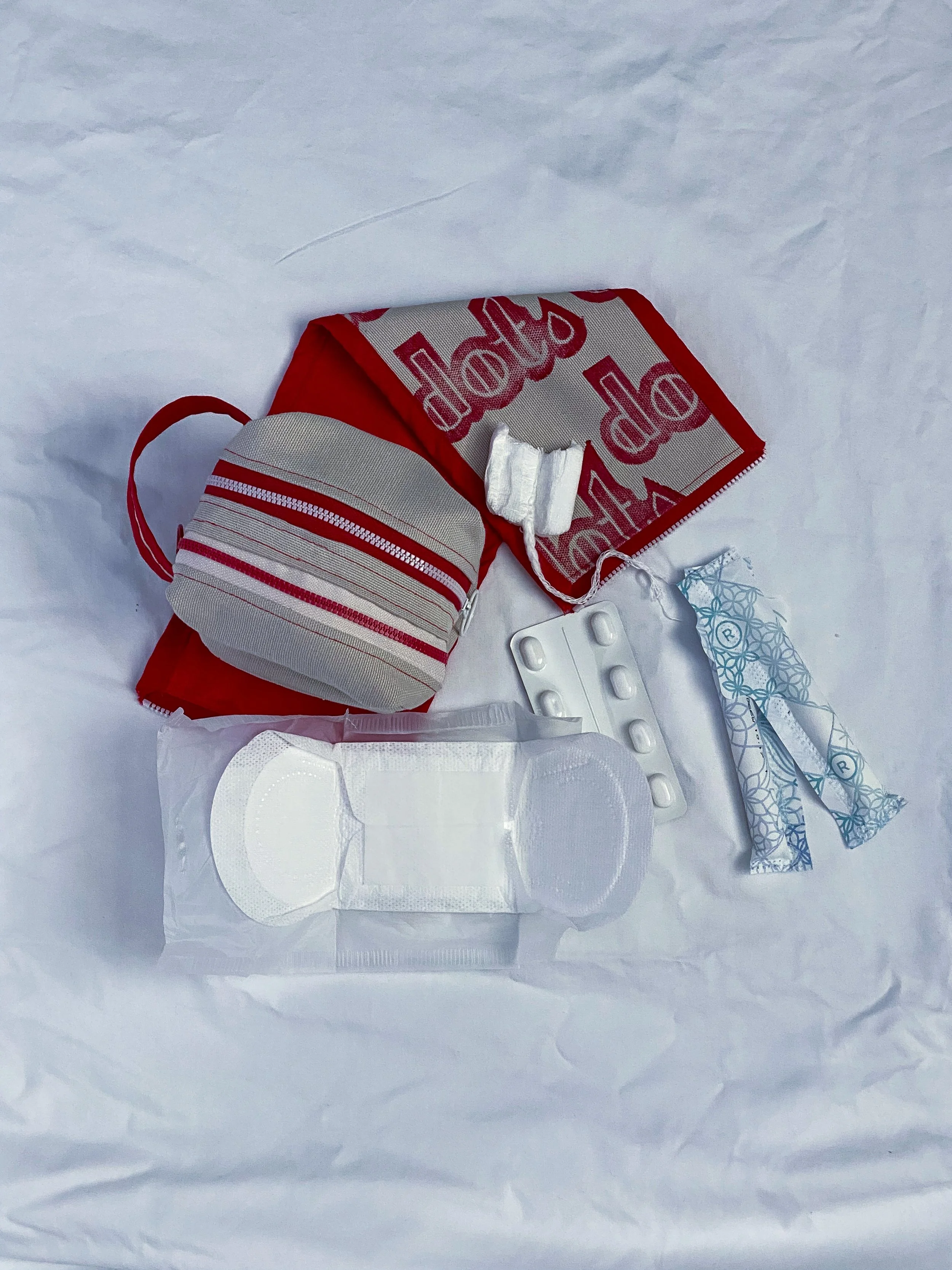A storage and disposal bag for new and used menstrual products in gender neutral packaging with a fun and bold typographic design.